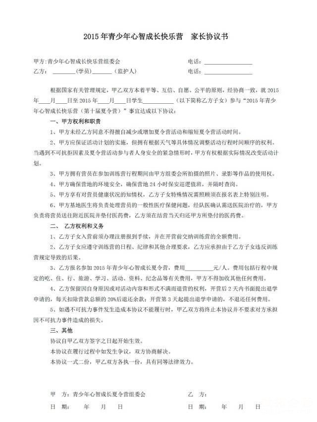 • 您当前位置: 主页 > 夏令营 > 家长协议书