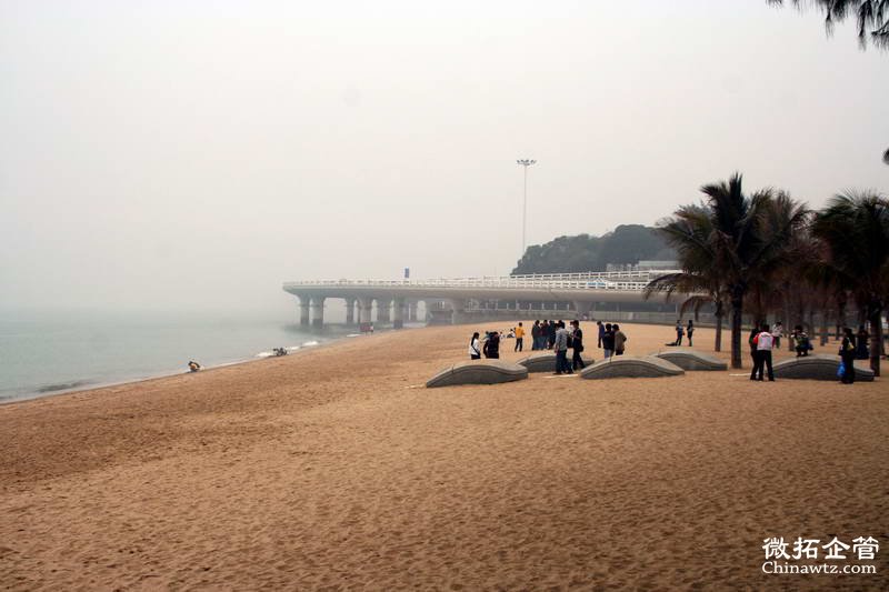 走进曾厝垵海湾,占地约3万平方米的书法广场马上映入眼帘。整个场地呈凹字形沿海岸线展开,充分利用了“海”的特色,以“书岛鹭胸怀,展大海豪情”为主题,并采用“以天为纸、以海为墨”的设计手法,整个设计方案融合了自然景观。东部为“书”字片区,内设文房四宝、遗墨拾芳等景观及便于修憩的笔架廊,着重展示我国历史上著名书法家及厦门当代书法家的书法作品;中部为“涛”字片区,在设计上强调其过渡性,主要以游玩沙滩为主,以嵌入沙滩的“涛”字连接东西片区;西部为“苑”字片区,在布局上以动态的参与功能为主,区域内用形似“苑”字的花架廊组成一个休闲性空间,内设“画沙、描红”,以墨会友广场及书吧等景点,便于书法活动的组织、使用。