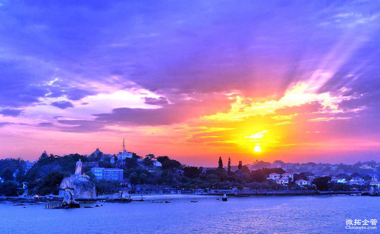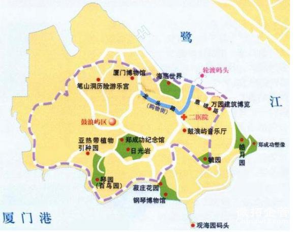 厦门鼓浪屿位于厦门岛西南隅,与厦门市隔海相望,与厦门岛只隔一条宽600米的鹭江,轮渡5分钟可达。面积1.87平方公里,2万多人,现为思明区所辖。岛上气候宜人,四季如春,无车马喧嚣,有鸟语花香,素有“海上花园”之誉。主要观光景点有日光岩、菽庄花园、皓月园,毓园、环岛路、鼓浪石、博物馆、郑成功纪念馆、海底世界和天然海滨浴场等,融历史、人文和自然景观于一体,为国家级风景名胜区,福建“十佳”风景区之首,全国35个著名景点之一。随着厦门经济特区的腾飞,鼓浪屿各种旅游配套服务设施日臻完善,成为观光、度假、旅游、购物、休闲、娱乐为一体的综合性的海岛风景文化旅游区。2007年5月8日,厦门市鼓浪屿风景名胜区经国家旅游局正式批准为国家5A级旅游景区。