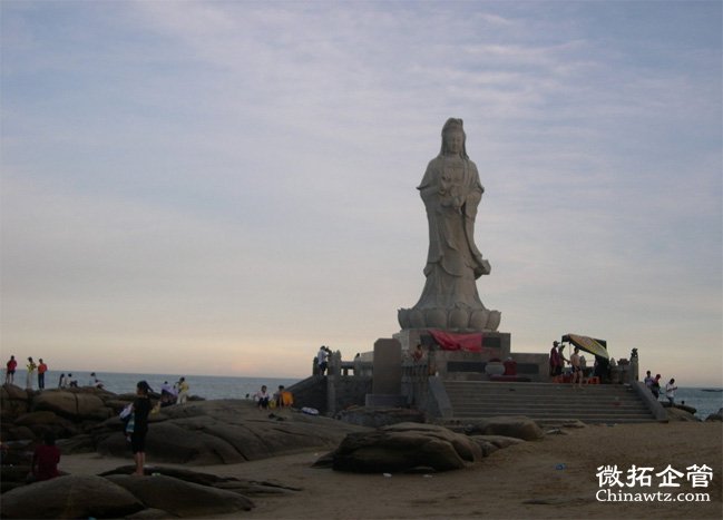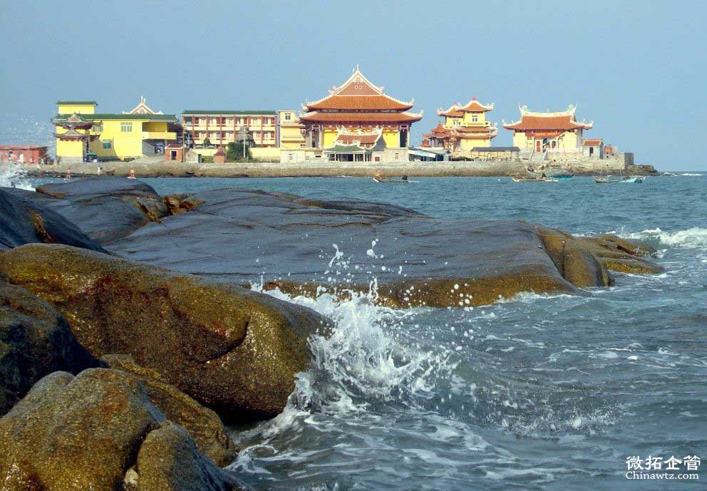 石狮黄金海岸位于石狮市永宁镇海滨,占地6000亩,海岸线12公里,与台湾隔海相望。一条10公里长的38米宽的水泥大道将她与石狮闹区联系起来。这里西北依宝盖山峰高控海,东南临台湾海峡水天一色。景区内有"观潮点帆宫屿湾,粼粼碧波白沙滩,莽莽林原新沙堤,怪石嶙峋观音山"。景区以西邻永宁镇为依托。永宁又称鳌城,为福建海防古镇。明洪武二十年(1387年)筑永宁卫城。永宁卫下辖崇武、福全、金门、高浦、中左(厦门)等五所,为泉南屏障。永宁胜迹遍布,姑嫂塔宋建海峤,虎岫寺唐遗古迹,明建城隍庙宏伟壮观甲泉南,“镇海石”巍然耸立怀英雄,还有“浸月池”、“观日台”、“半月沉江”、“石鼓通潮”等10景。